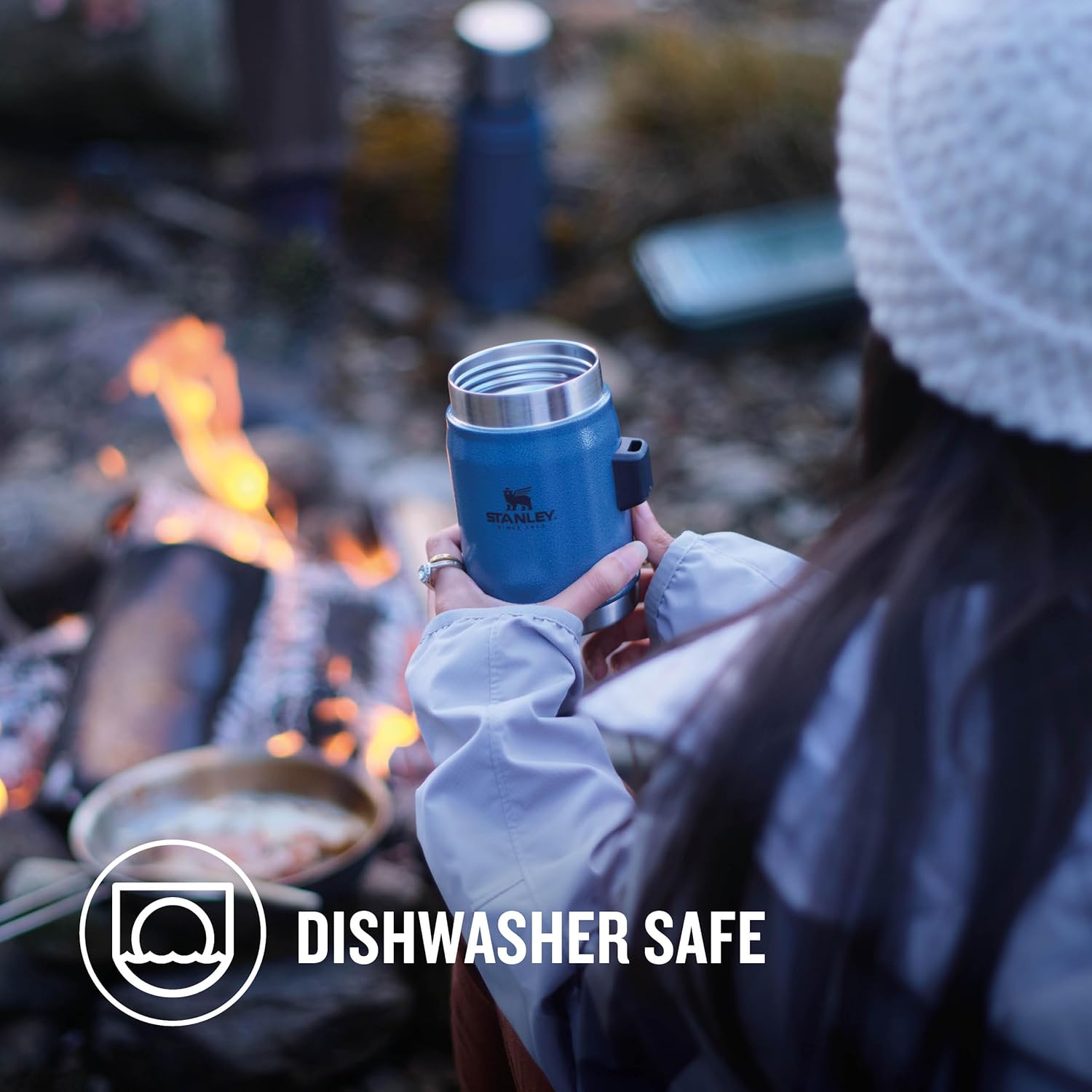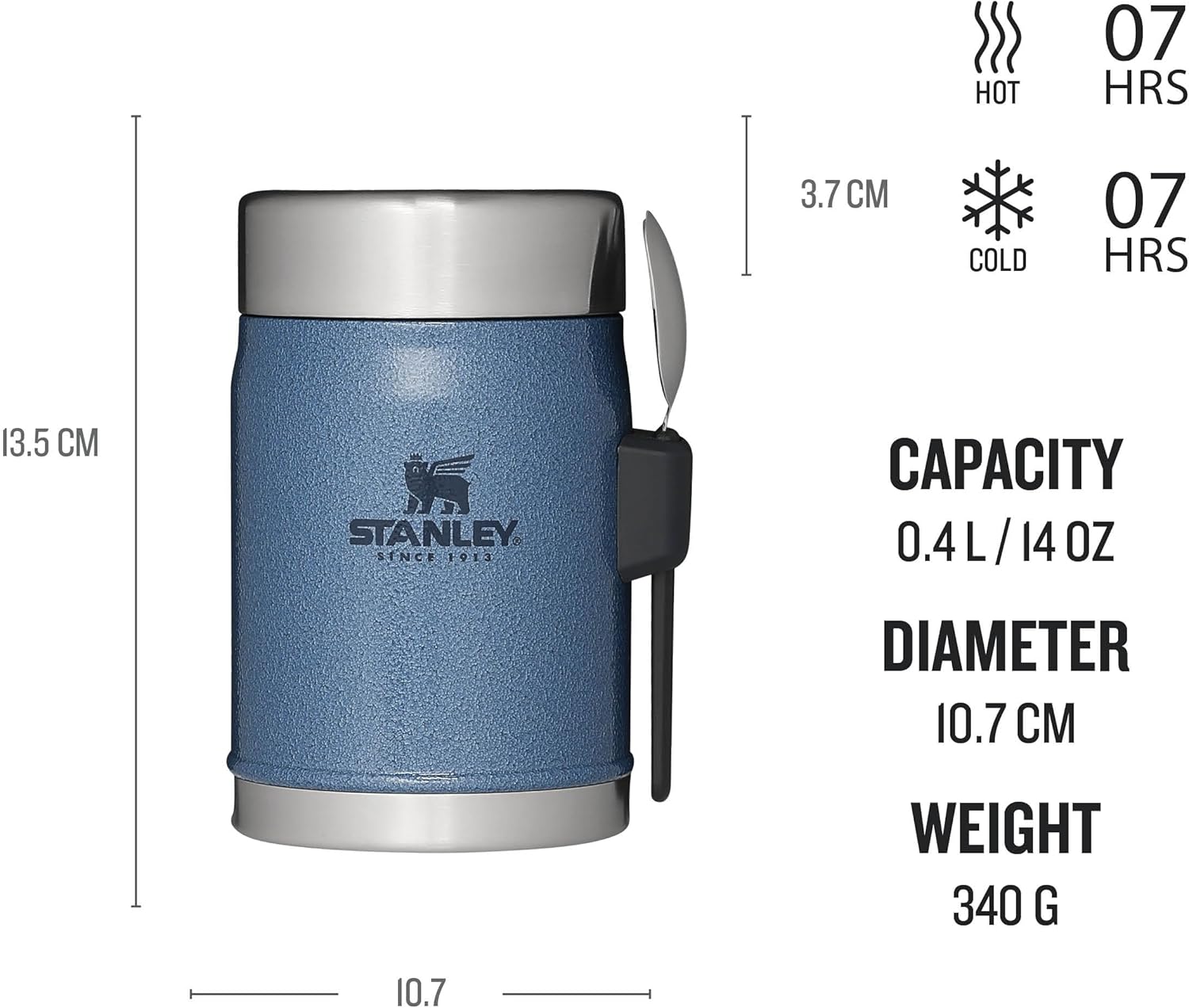 KEEPS HOT OR COLD + INTEGRATED SPORK: The compact Stanley food flask with spork keeps food hot or cold for 7 hours. It features a leak-resistant lid with a pressure-release valve for easy opening and a wide mouth for filling, pouring, and cleaning.